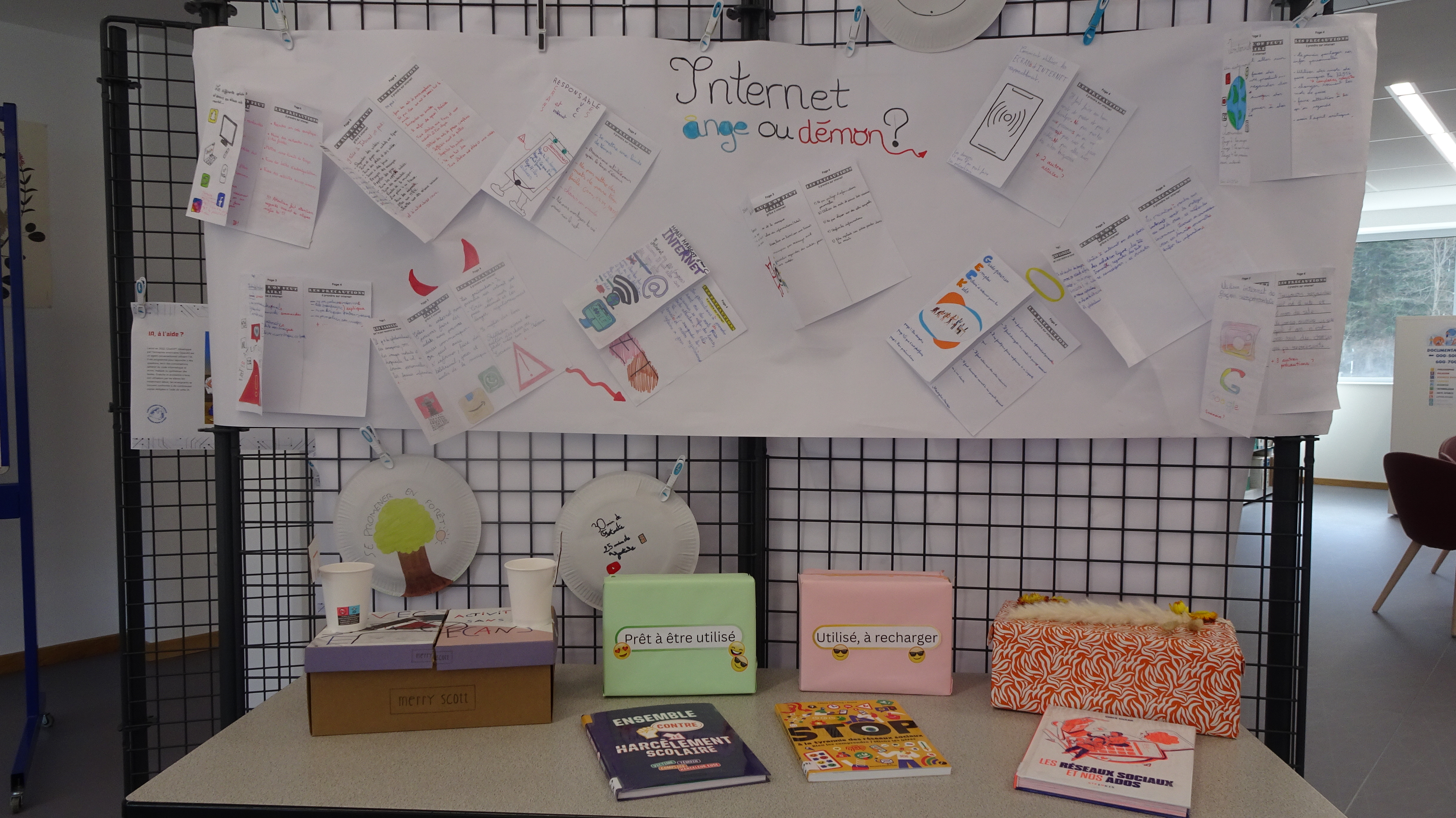 Cette même semaine, le CDI accueillait l'exposition : "Internet : Ange ou démon" réalisée en EMC par les classes de 6eme avec Mme Le Moing